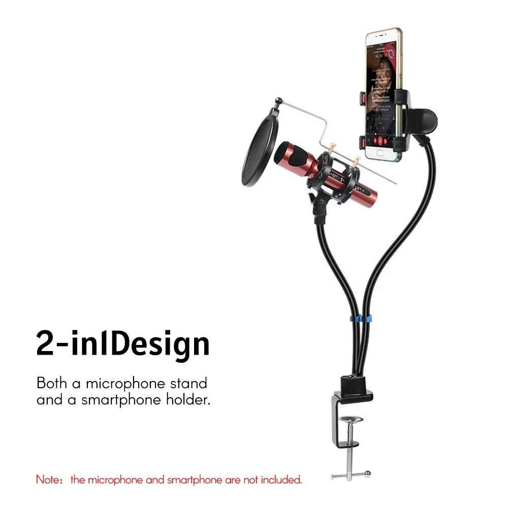Dieses 2-in-1-Design dient sowohl als Mikrofonständer als auch als Smartphone-Halter.