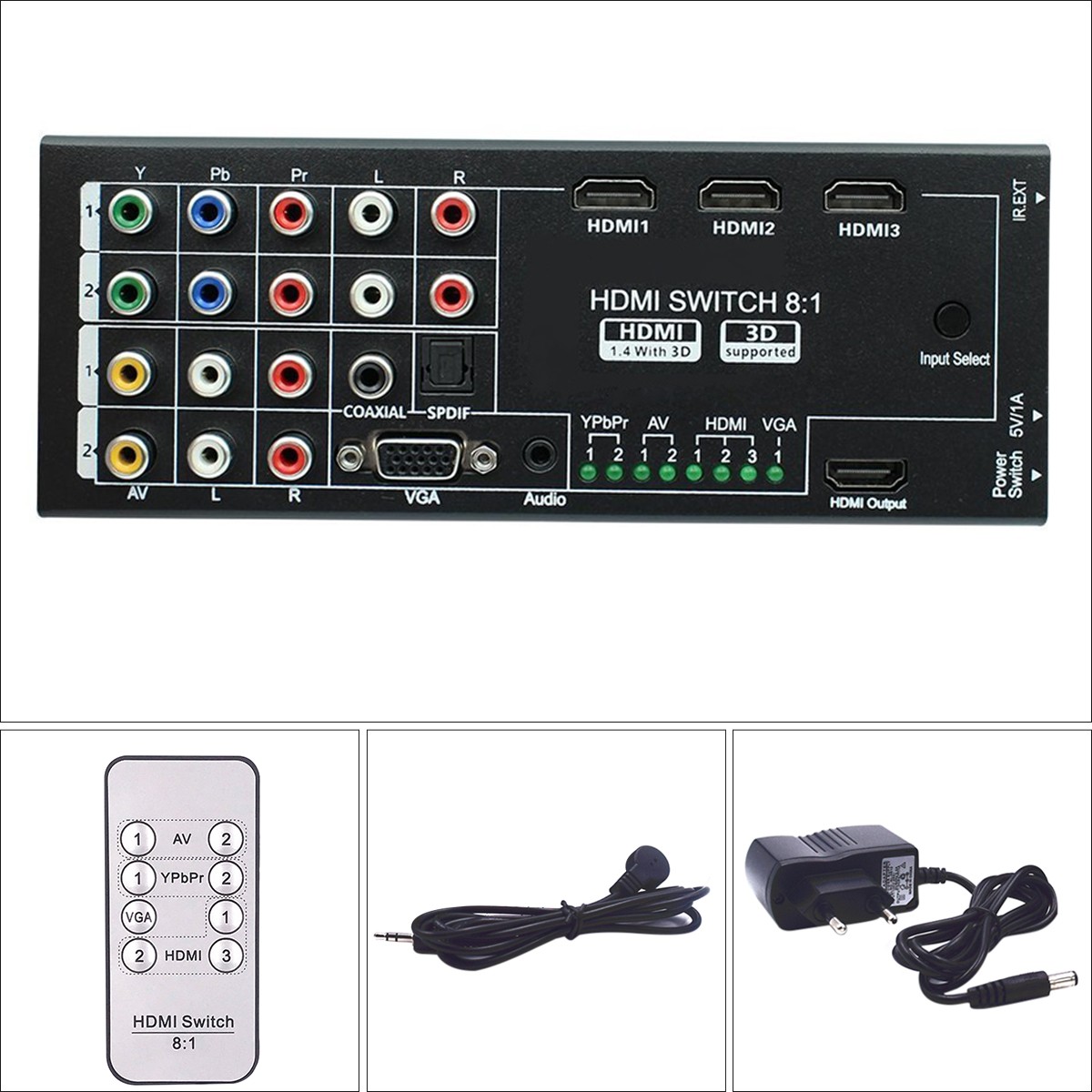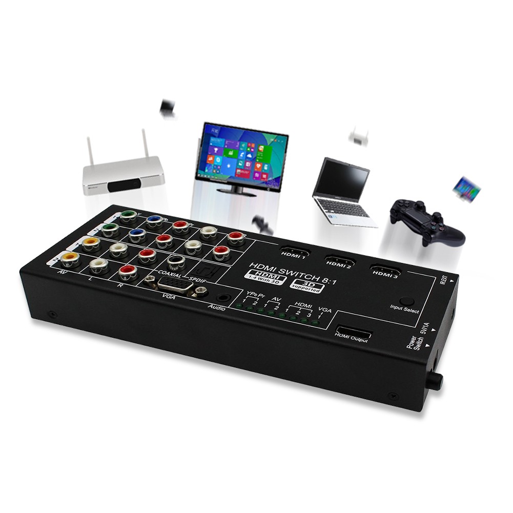Multi-Functional Audio/Video Switch Extractor with 8 Inputs to 1 HDMI Output Full HD1080p Converter Adapter With Remote Control