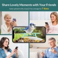 Die Vogelhaus-Kamera ist professionell als schönes Zuhause für Ihre Hinterhofvögel konzipiert. IP65 wetterfest und fester Stand machen es zu einem soliden Haus für Vögel. Der 1.5 l große Behälter kann genug Futter für Vögel aufbewahren, sodass Sie Vogelfutter nicht häufig hinzufügen müssen. Machen Sie sich keine Sorgen, dass Schimmel die wasserdichte Funktion besitzt. Diese vogelfreundlichen Eigenschaften werden alle Arten von Vögeln anziehen. Genießen Sie einfach Ihre verbesserte Vogelbeobachtungsreise mit unserer Telefon-App.