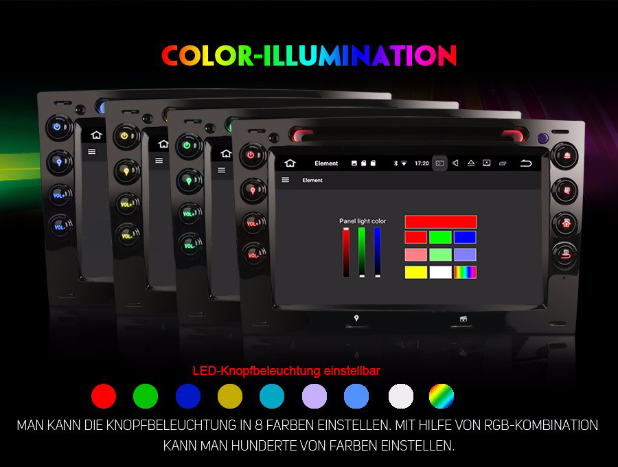 - Element: 8 Panel Lichtfarben, support RGB Kombination
