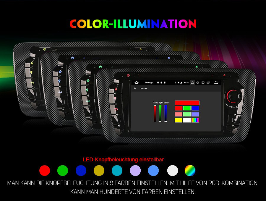 - Element: 8 Panel Lichtfarben, support RGB Kombination