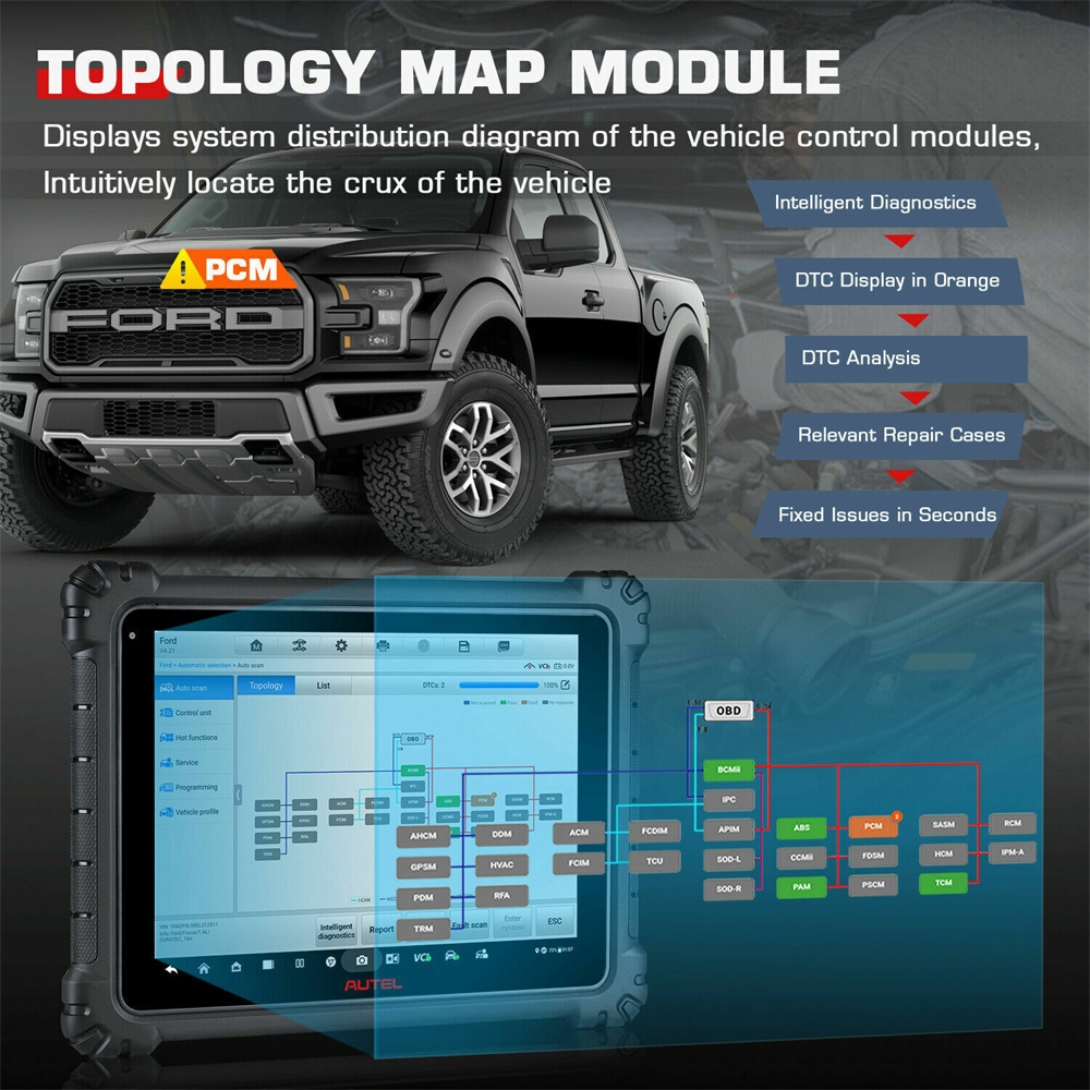 Autel OBD2 scanner MaxiSys M909 hat Topologie Modul Mapping design zu geben sie die unverwechselbare diagnose ergebnisse: