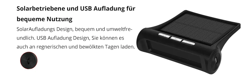 Solarladung, 24-Stunden-Akkulaufzeit mit USB Ladeanschluss zur Unterstützung des Ladens bei Regen