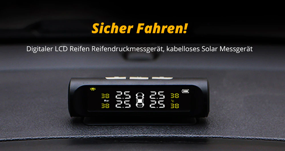 | Verpackungsinhalt | Verpackungsinhalt: 1 x Reifendruck Überwachung Maßstab, 1 x Englisches Handbuch, 4 x Externer Sensor, 1 x Schraubenschlüssel, 4 x Anti-Diebstahl Nut, 1 x Ladekabel, 1 x Doppelseitiges Klebeband |