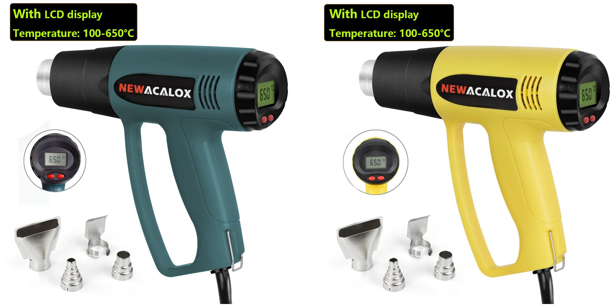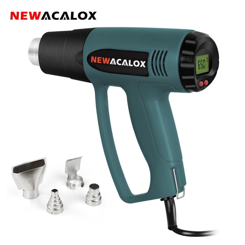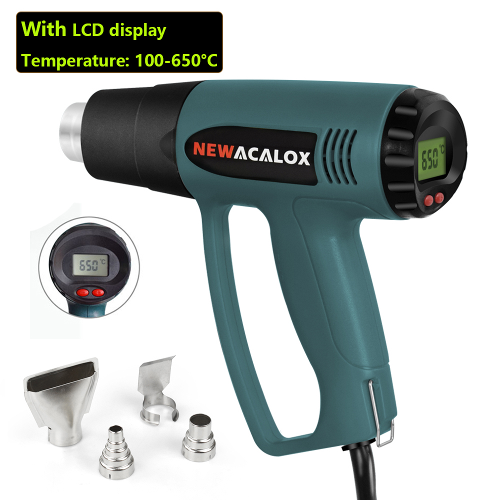 NEWACALOX 2000W 220V EU Stecker Industrielle Elektrische Heißluft Pistole Temperaturregler LCD Wärme Pistolen Schrumpfen Verpackung Thermische Heizung düse