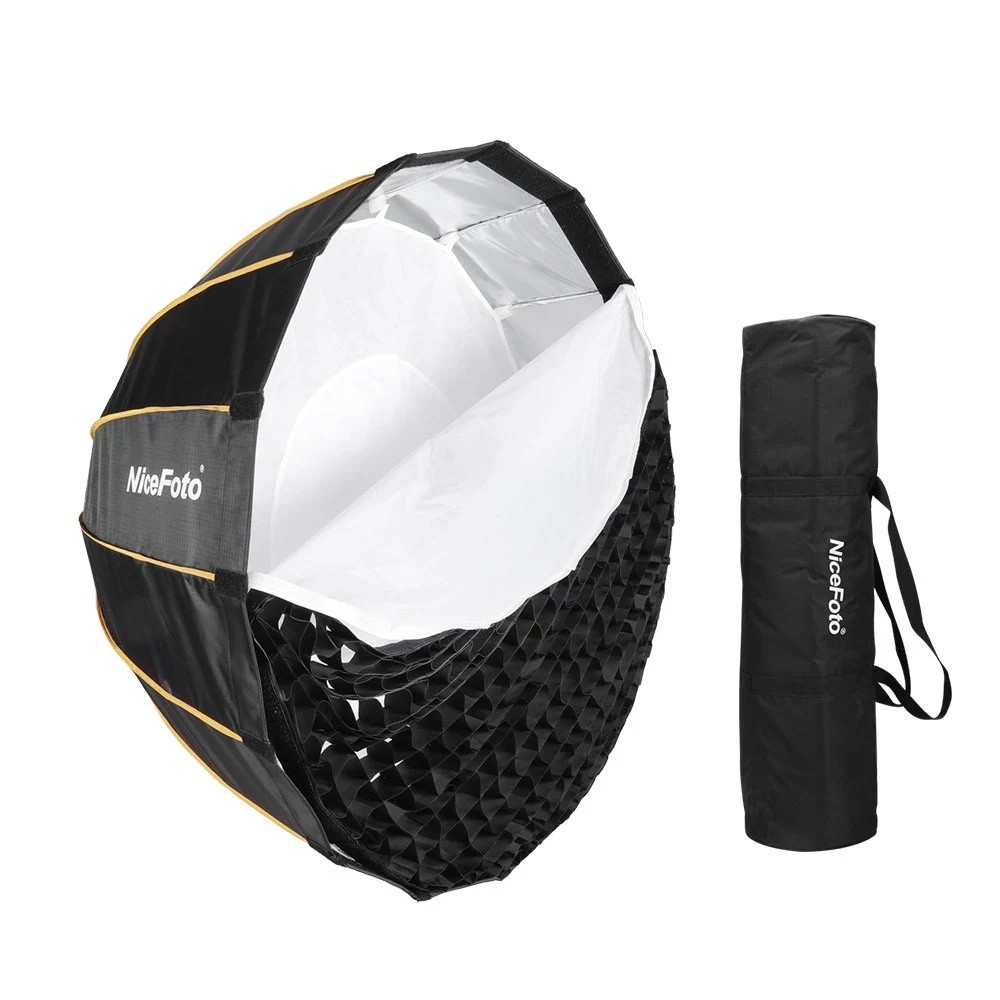 Eine spezielle parabolische Softbox für die professionelle LED-Videoleuchte mit Bowens-Halterung, z. B. Aputure 120D 120D II usw.! Einfach und schnell ohne Mittelstäbe auf dem Schirm aufzustellen, vermeiden Sie Lichtschatten, um sicherzustellen, dass die Beleuchtung rein und hell ist.