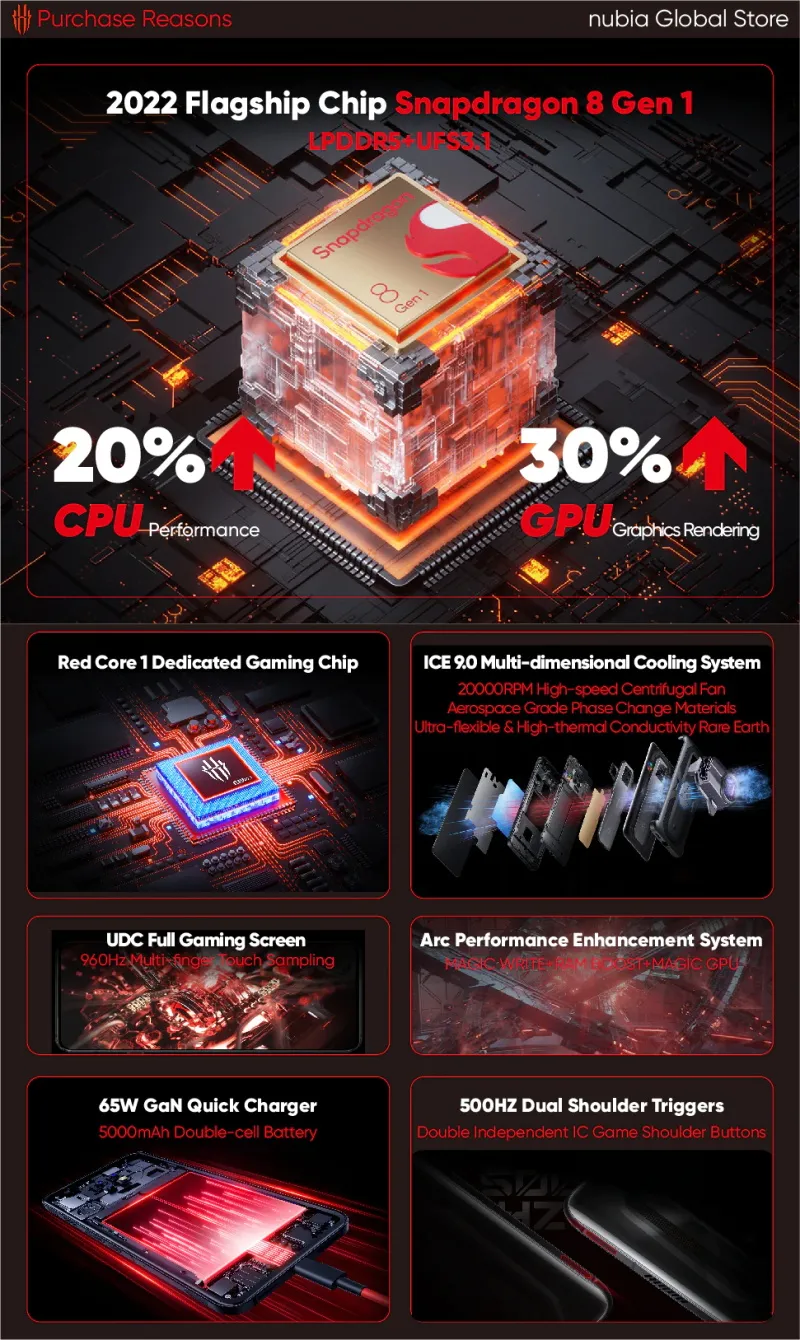 1.CPU:Snapdragon 8 Gen 1 Octa Core