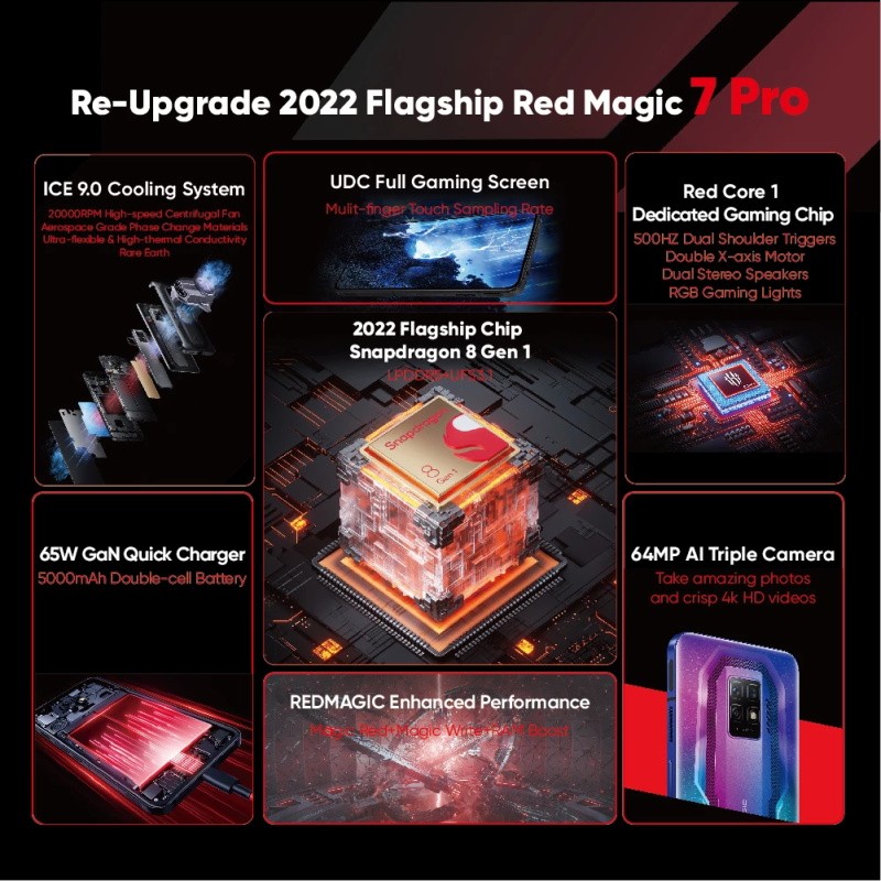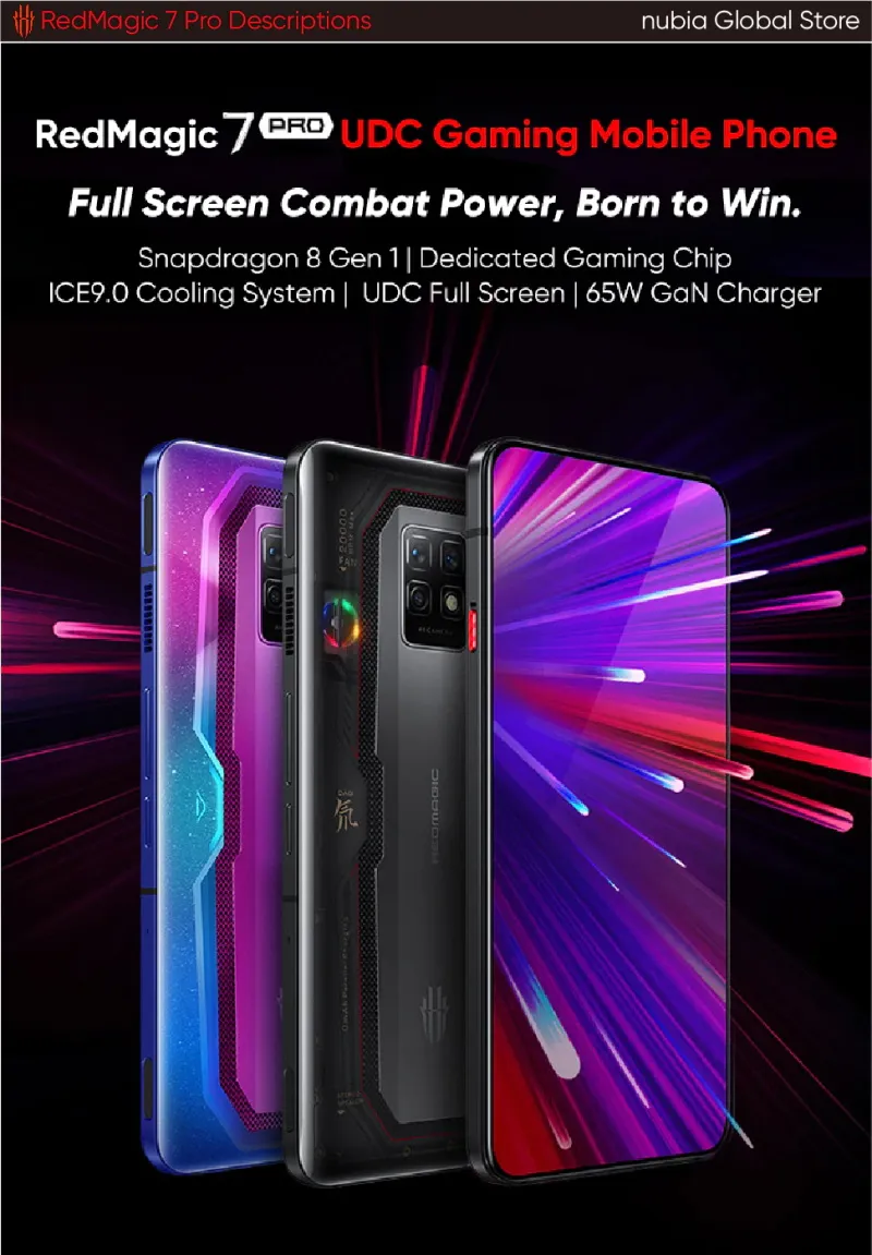 Nubia Red Magic 7 Pro 6.8'' Android 12 Qualcomm Snapdragon 8Gen1 5G 12GB RAM 256GB ROM Smartphone 5000 mAh Akku Suport Gooble Spielen und OTA Update