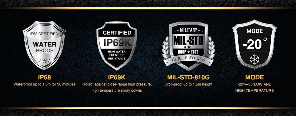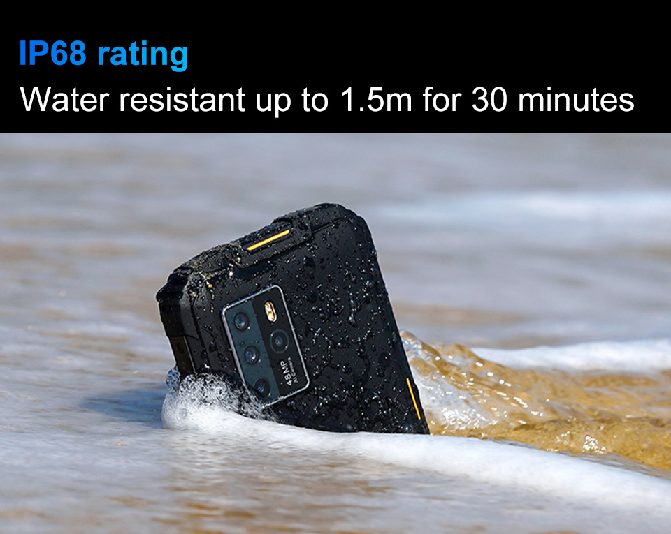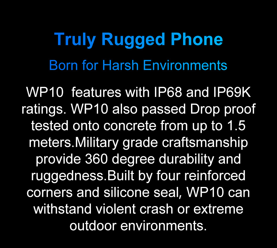 ⑧Truly Rugged Phone - WP10 als robustes Telefon verfügt über die Schutzart IP68 IP69k und das STD-MIL-810G-Zertifikat, mit dem es aus einer Höhe von 1,5 m sturzsicher und in einer Tiefe von 1,5 m bis zu 30 Minuten wasserdicht ist. Es ist auch staubdicht und stoßfest.