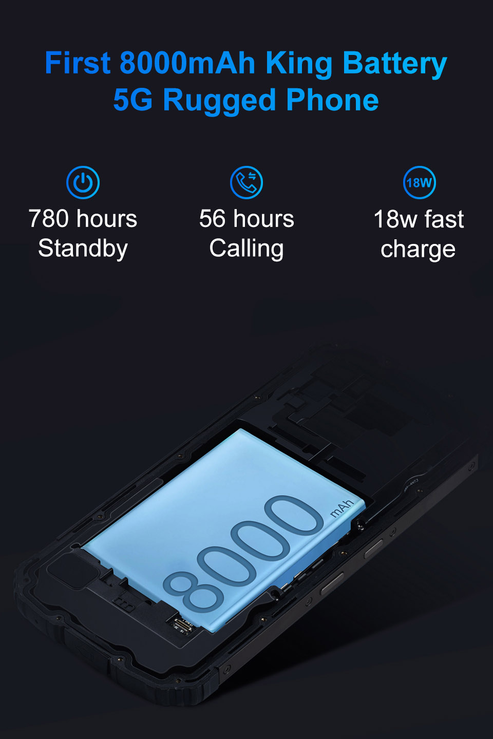 ①Erstes robustes 8000-mAh-Akku-Telefon in der 5G-Industrie - Wir versorgen das 5G mit einem langlebigen 8000-mAh-Mega-Akku.