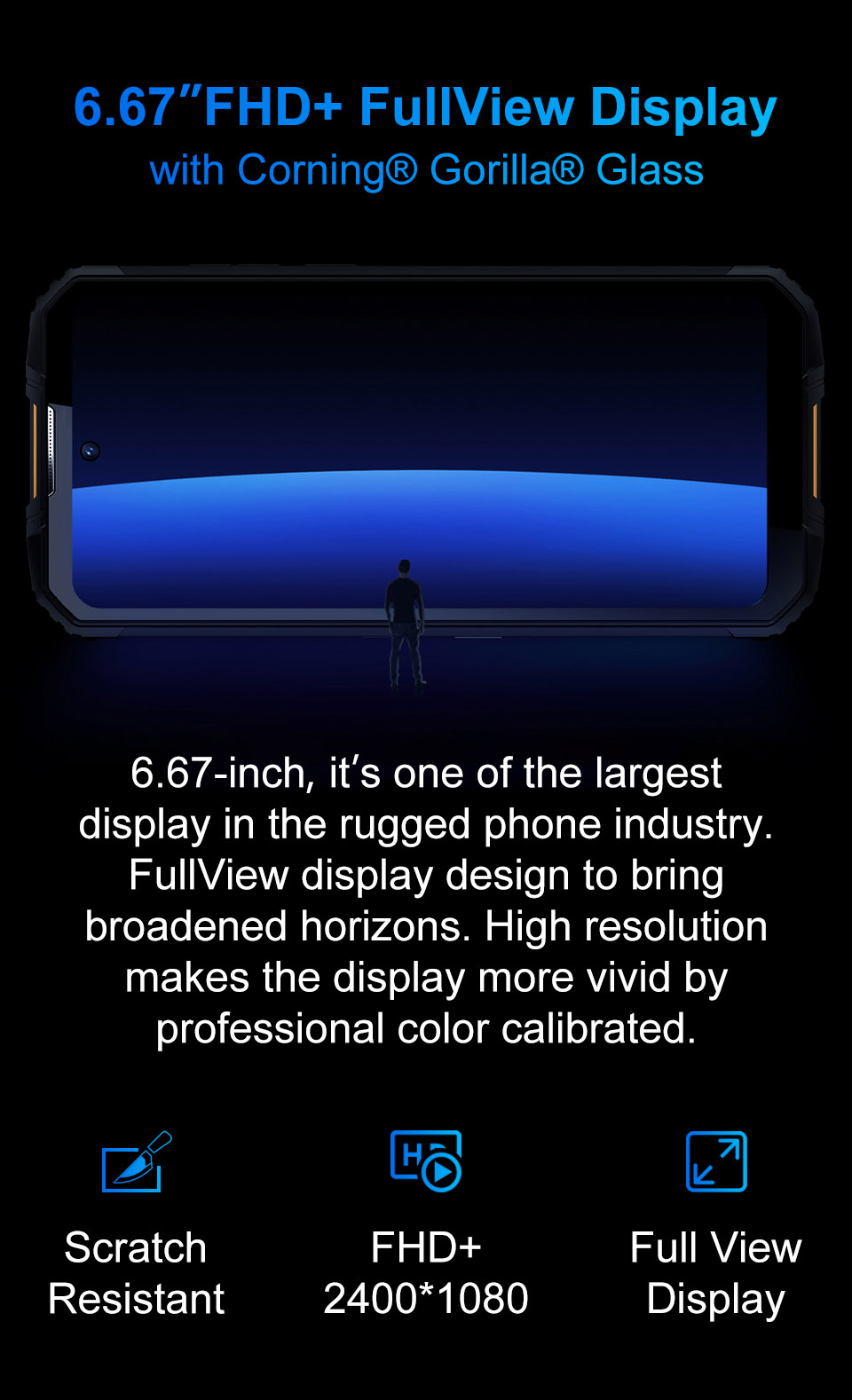 ④Gorilla® Glass - 6,67 Zoll, ist eines der größten Displays in der robusten Telefonindustrie.