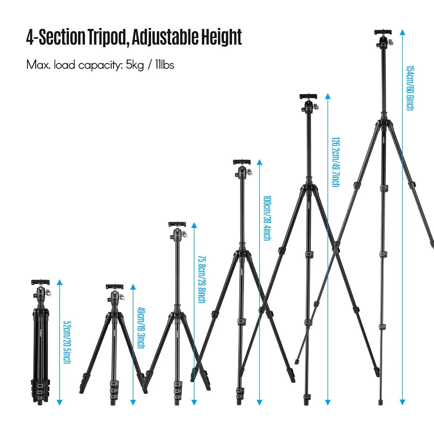 Das leichte und kompakte Stativ wiegt nur 0,99 kg und ist höhenverstellbar von 43 cm bis 154 cm. Unabhängig von der Höhe kann die zentrale Säule für eine perfekte Makrofotografie stabil horizontal aufgestellt werden.