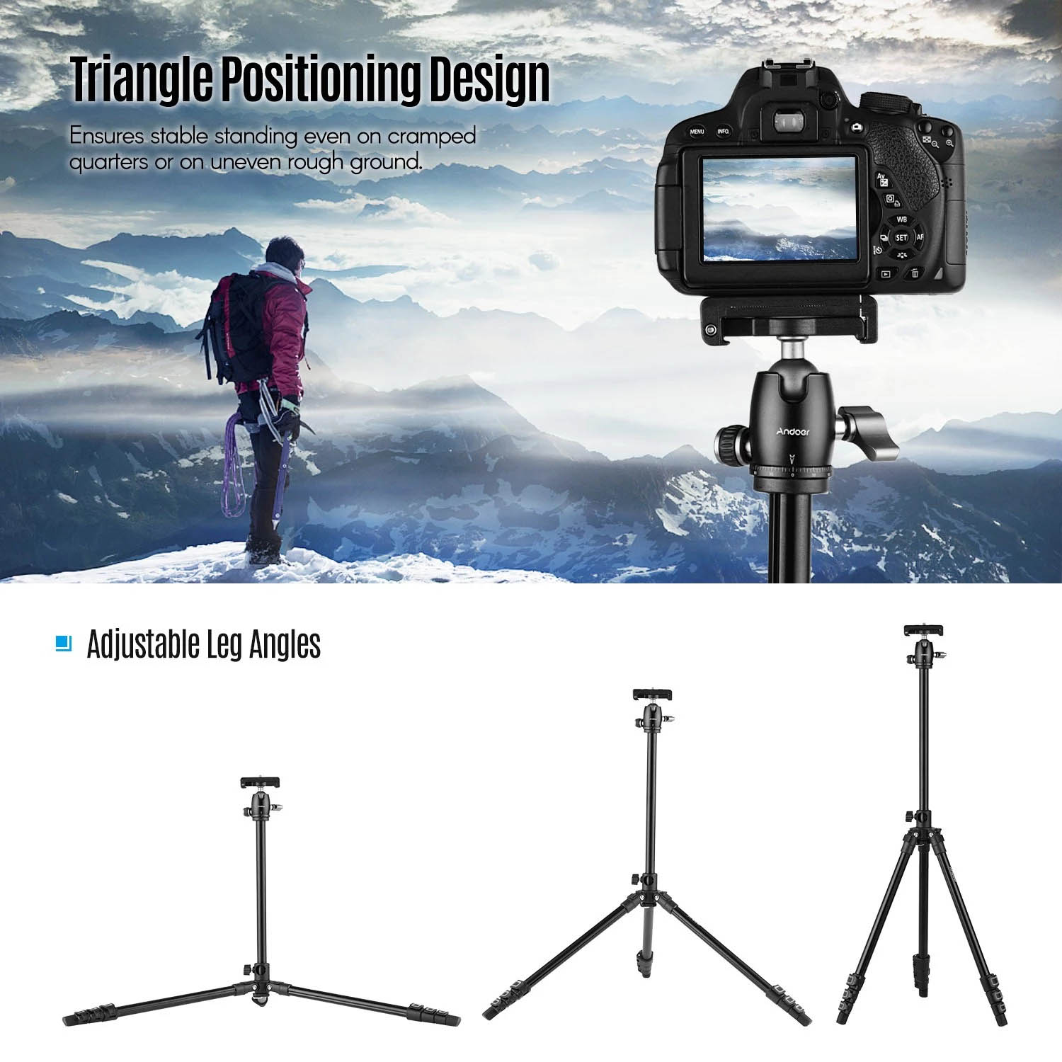Mit dem federbelasteten Haken können Sie zusätzliches Gewicht an der Mitte des Stativs aufhängen, um die Stabilität zu verbessern und Ihre Aufnahme stabiler und ausgezeichneter zu machen.