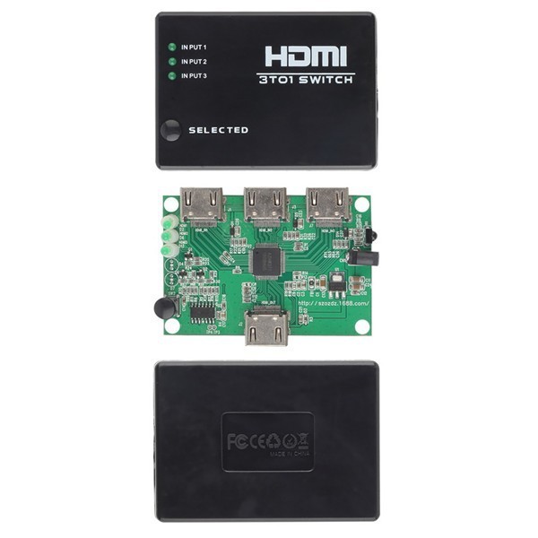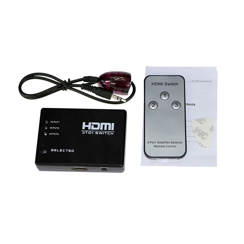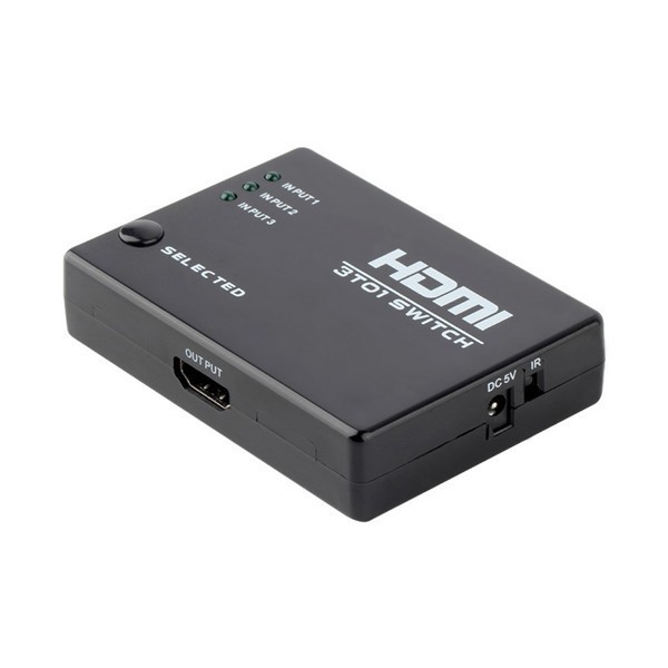 This is a kind of HDMI mini Switcher not only has the key-press-switching function, but also has IR remote control and intelligent function.
