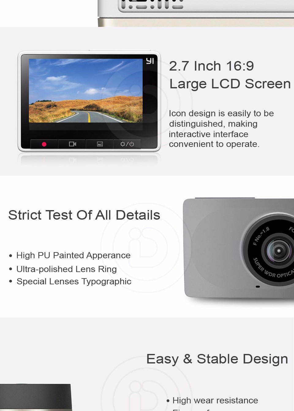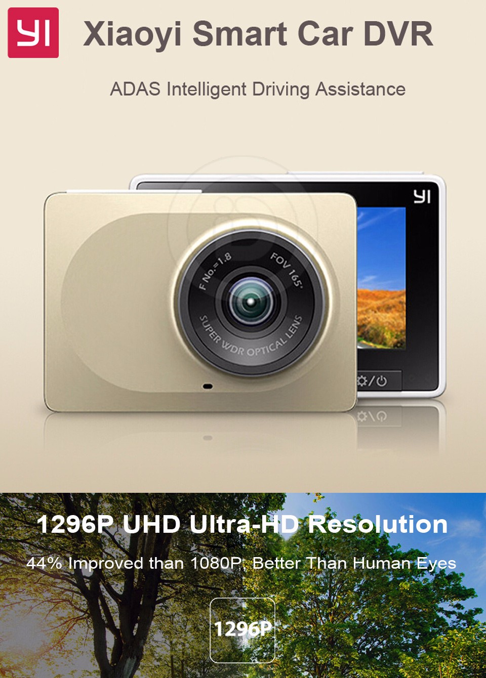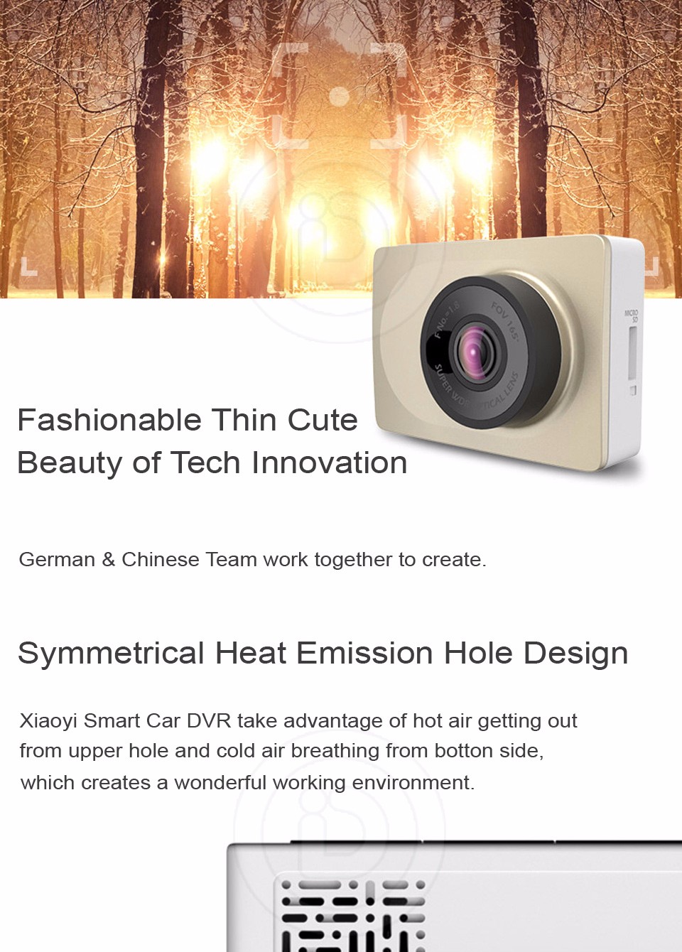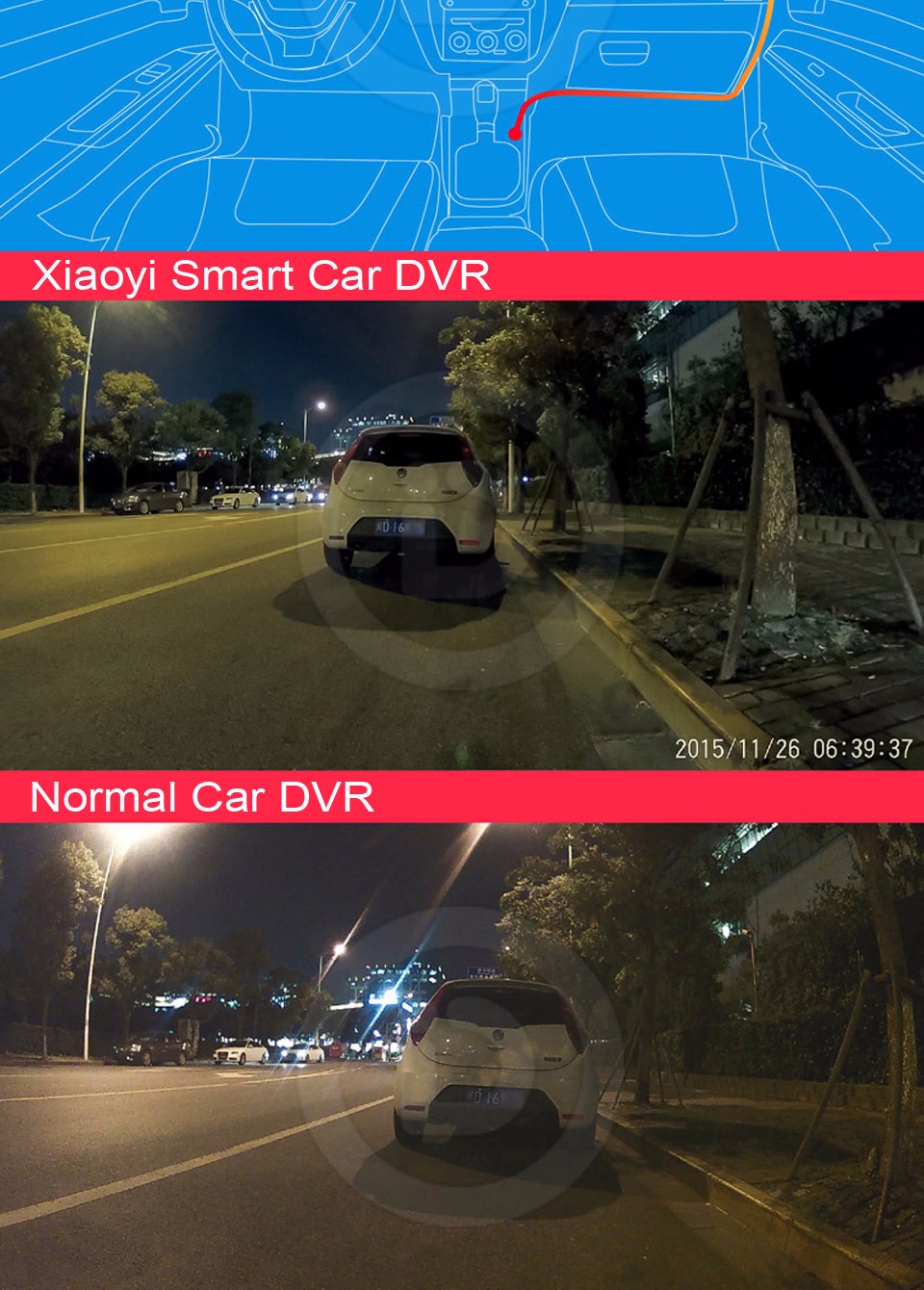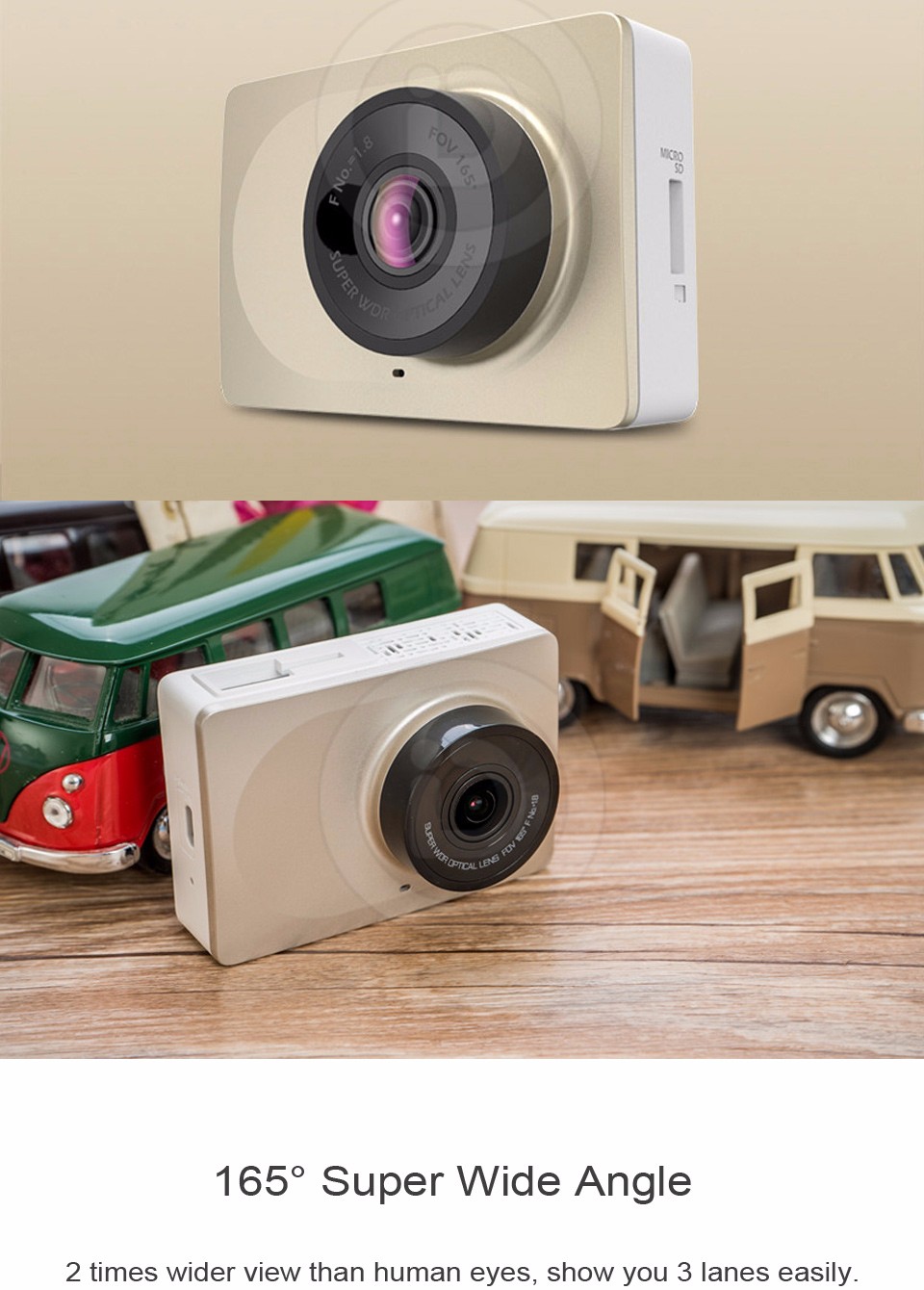- 165 degrees super wide angle, 2 times wider view than human eyes, show you 3 lanes easily.