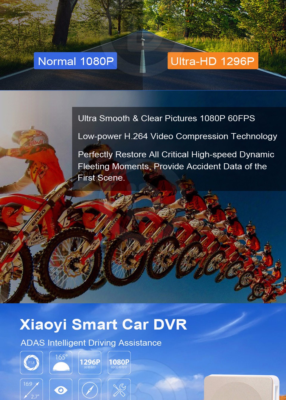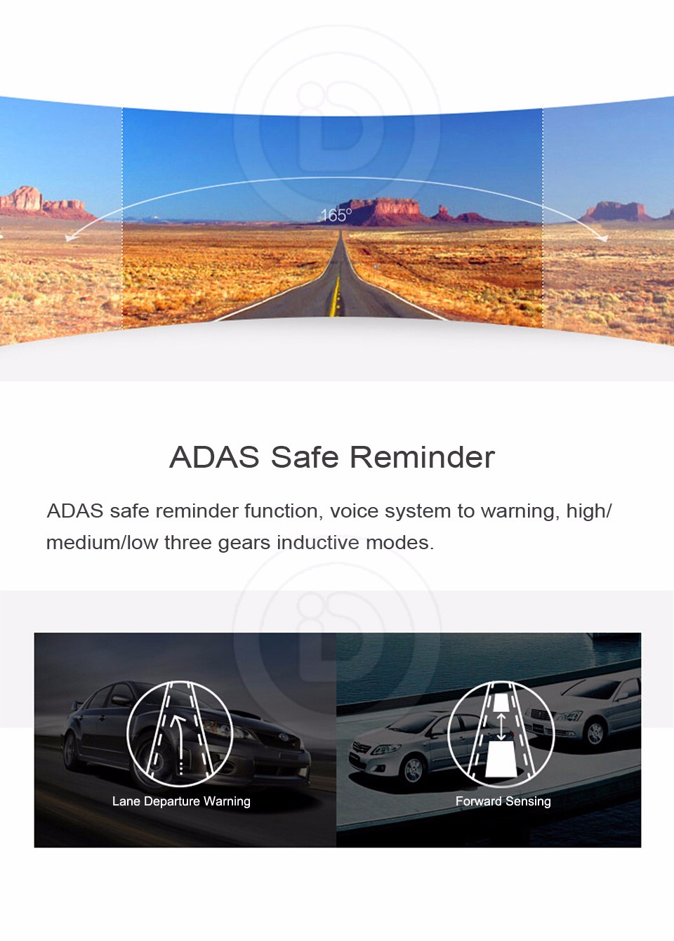 - ADAS safe reminder function, voice system to warning, high/medium/low three gears inductive modes.