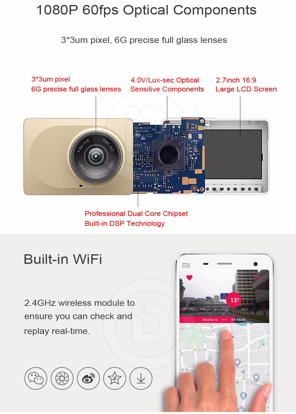 - Built-in Wi-Fi, 2.4GHz wireless module to ensure you can check and replay real-time.