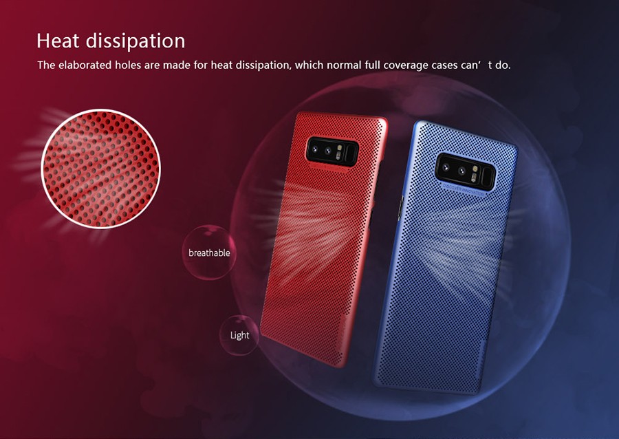 Made from PC material. Processed by nano oil painting technology. Matte surface. Lightweight and thin. Simple design and ventilated. Scratch-resistant, wear-proof, anti fingerprint and oil contamination. Three thousand little holes make it with good ventilated performance. Nillkin Air case with fashionable simple design, cool and delicate touch feeling. Frame of the camera cutout is higher for camera protection.