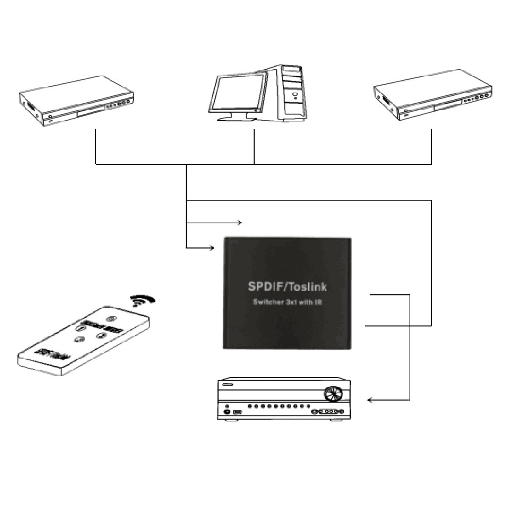 1. Three optical signals switch to a set of SPDIF/TosLin signal receiving device
