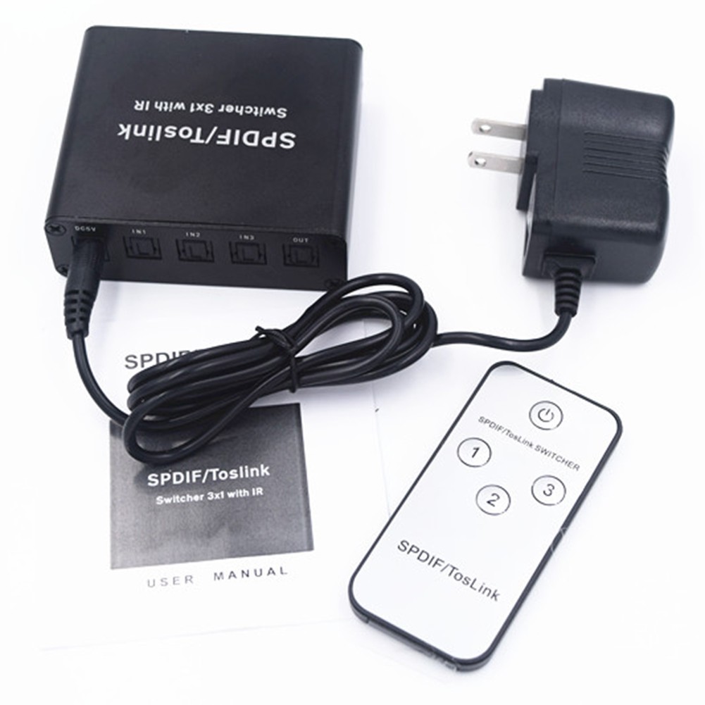 Full HD Digital Optical Audio Switch SPDIF/TOSLINK Optical Audio 3x1 Switcher Splitter Extender with IR Remote Controller