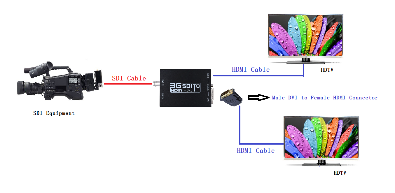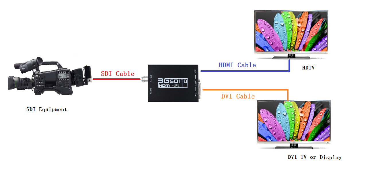 The SDI to HDMI+DVI converter allows SD-SDI, HD-SDI and 3G-SDI signals to be shown on HDMI and DVI displays while ensuring high bit rates of 2.970 Gbit/s to give you fast signal transmission without any loss. For professionals this means that it is now easier to distribute and extend your 3G SDI signal while giving you the ability to display your work on HDMI and DVI displays thanks to the built in HDMI converter.