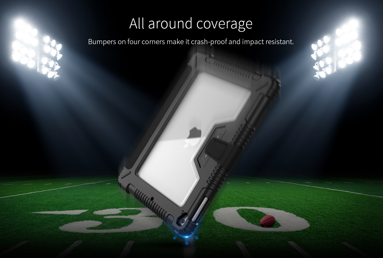 Der aus importiertem TPU-, PC- und PU-Material gefertigte Bumper bietet Ihrem iPad dreifachen Schutz. Schimmel durch integrale Injektion mit geometrischem Design verbindet sich subtil mit Schutz und Mode. Der Flip-Cover besteht aus ausgewähltem PU-Leder mit einer Punktstruktur, die langlebig und rutschfest ist. Die eingebaute Magnetverbindung unterstützt die automatische Wake / Sleep-Funktion des iPads und hilft so, iPad-Strom zu sparen und die Akkulaufzeit zu verlängern. Mit der einzigartigen Faltabdeckung können Sie Ihr iPad in jedem Winkel anzeigen, während Sie tippen, lesen und im Internet surfen. Praktisch für Ihre Arbeit und Unterhaltung. Ausgestattet mit Stoßstangen an jeder Ecke schützen sie vor Kratzern und Stößen.