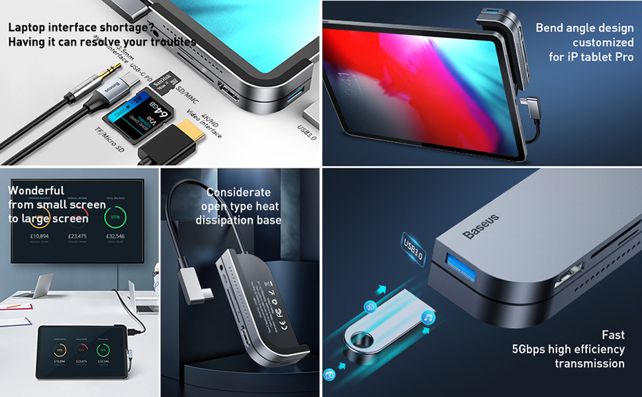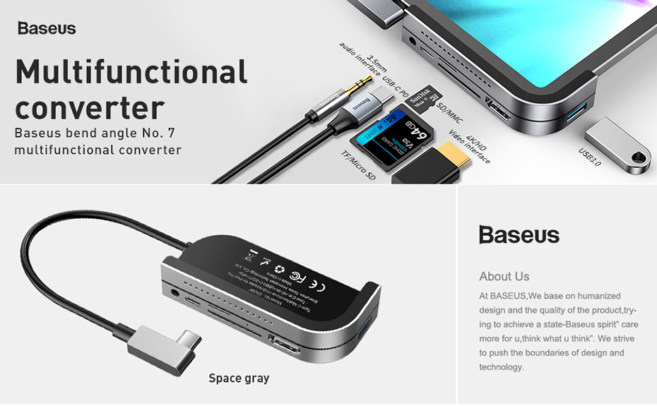 Baseus Biegewinkel Nr. 7 Multifunktionaler Typ-C-HUB-Konverter