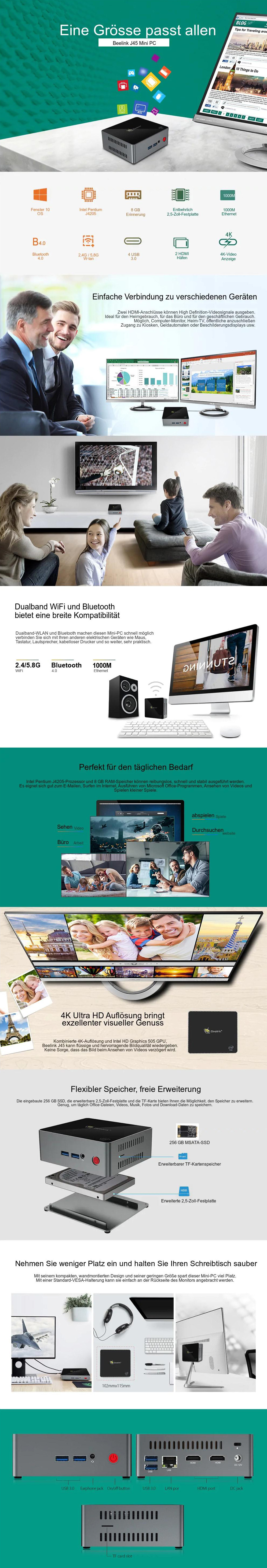 | Daten | Marke: Beelink Typ: Mini PC CPU: Intel Pentium J4205 Kern: Vier Kern GPU: Intel HD Grafik 505 Max. Extended Capacity: TF-Karte bis zu 64 GB (nicht im Lieferumfang enthalten) |