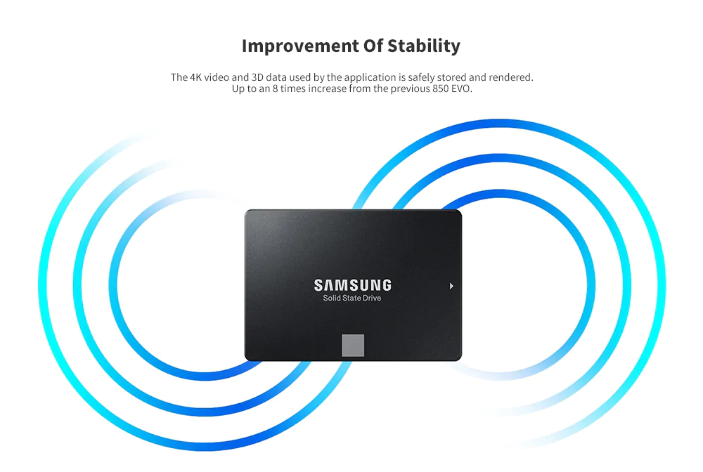 ● Verglichen mit dem frühen 850 EVO, wird die TBW um 8 Mal erhöht