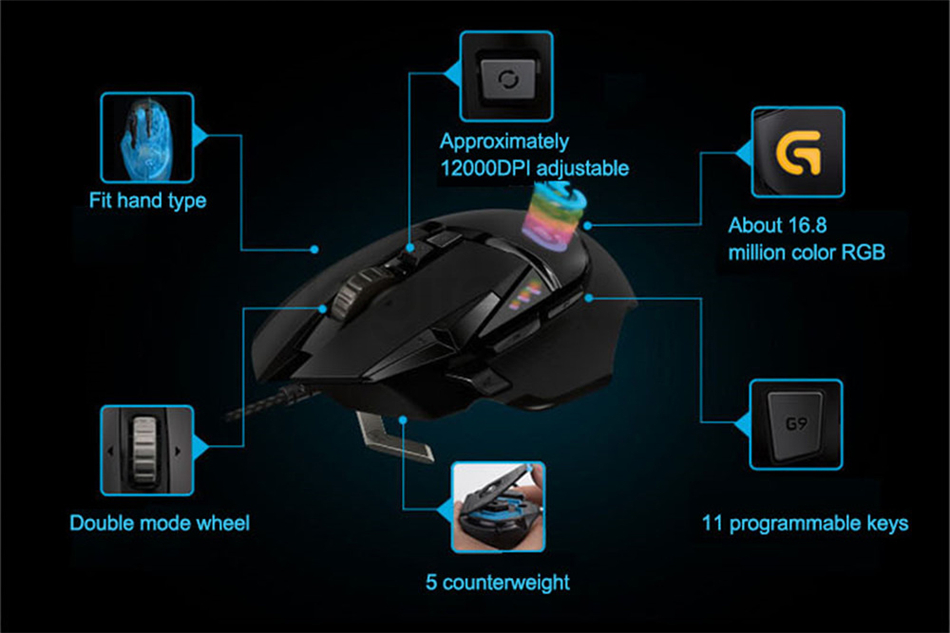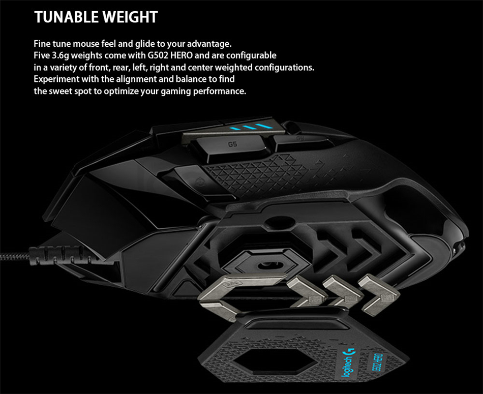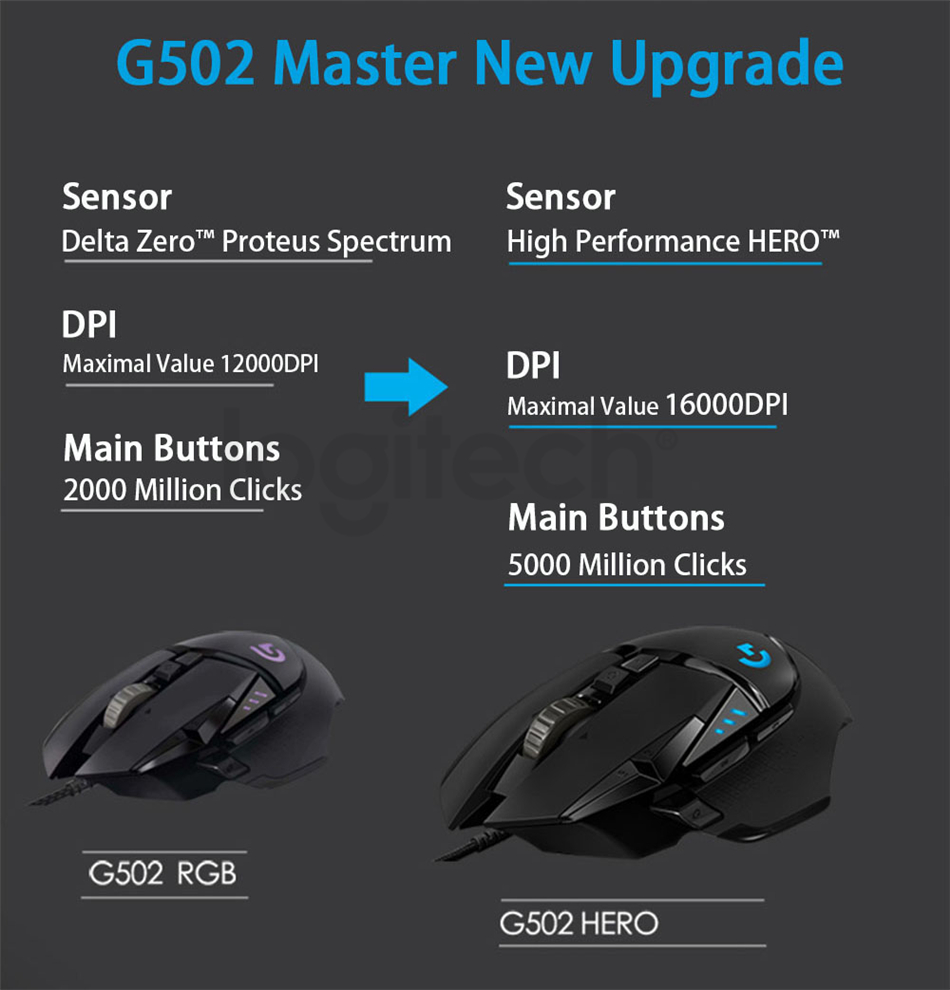 Original Logitech G502 Hero Hochleistungsspiel Mouse Hero Engine mit 16.000 DPI programmierbarer einstellbarer Lichtsynchronisation