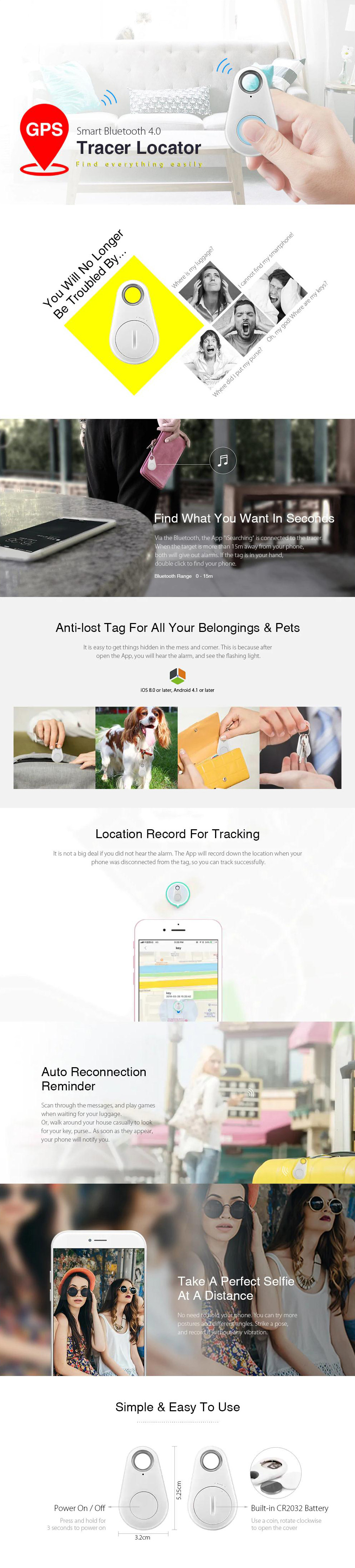 | Packungsinhalt | Verpackungsinhalt: 1 x Tragbare Anti - verloren Bluetooth 4.0 Tracer GPS Ortungsgerät Anhängsel Alarm Brieftasche Schlüssel Haustier Finder, 1 x Englisches Benutzerhandbuch |