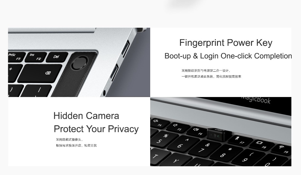Das Honor MagicBook Pro kombiniert das Entsperren von Fingerabdrücken mit dem Ein- / Ausschalter. Die beiden Schritte Einschalten und Entsperren können gleichzeitig ausgeführt werden. Im Notfall kann das System in kürzester Zeit ausgeführt werden.