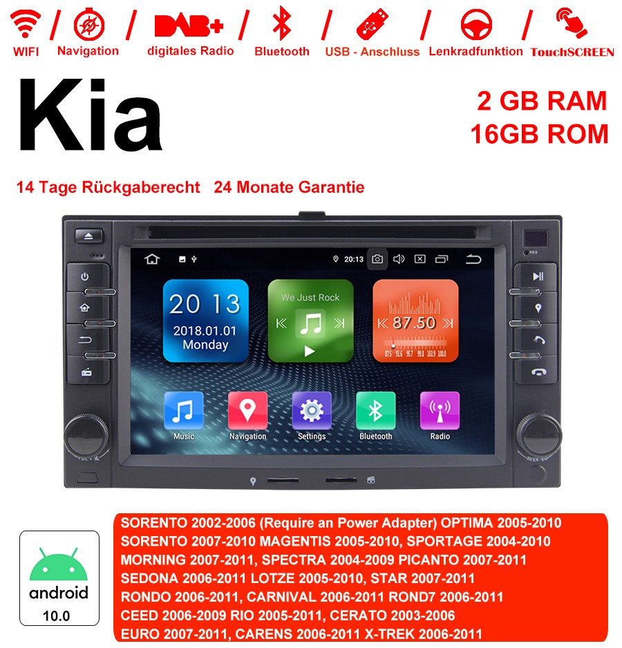 6.2'' Android 10.0 Quad-core 2GB RAM 16GB Flash Autoradio / Multimedia Für Kia SORENTO,OPTIMA,SORENTO,MAGENTIS, SPORTAGE,MORNING,SPECTRA, PICANTO,SEDONA,LOTZE,STAR,RONDO,CARNIVAL, ROND,CEED,RIO,CERATO,EURO,CARENS,X-TREK