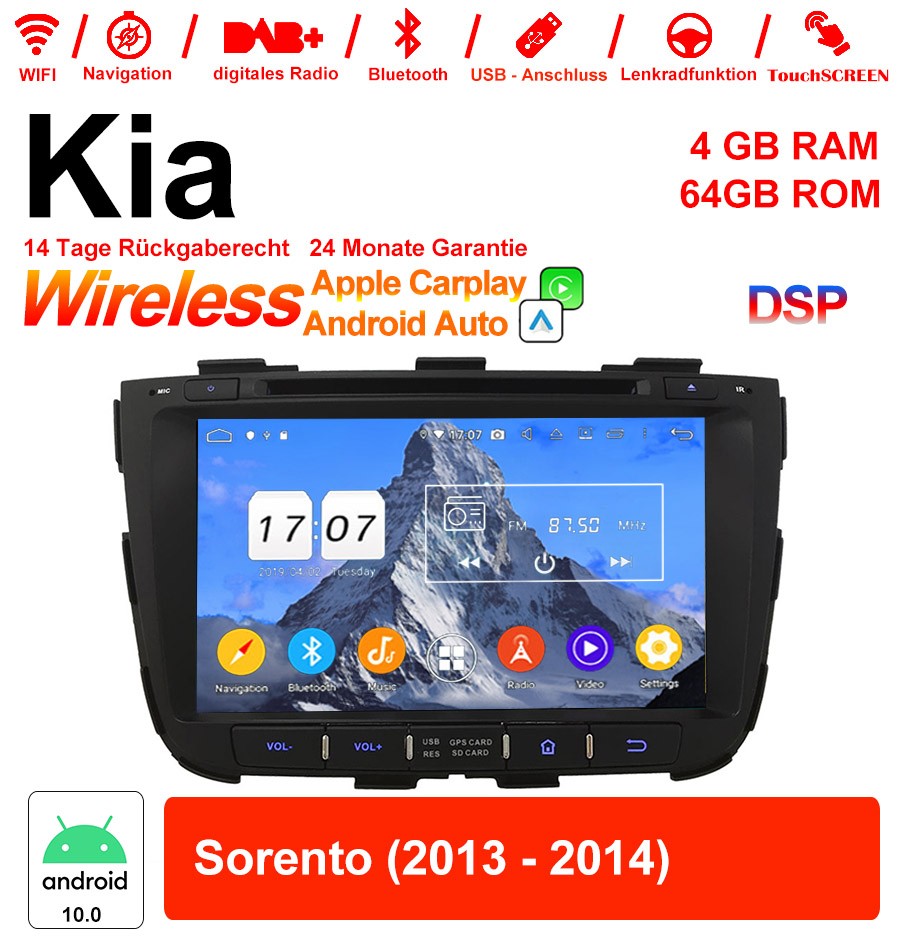 8 Zoll Android 12.0 Autoradio / Multimedia 4GB RAM 64GB ROM Für Kia Sorento 2013 2014 Mit WiFi NAVI Bluetooth USB