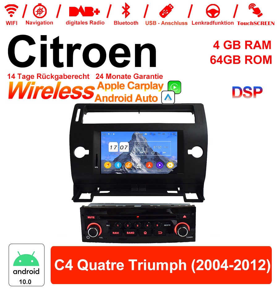 7 Zoll Android 12.0 Autoradio / Multimedia 4GB RAM 64GB ROM Für Citroen C4 Quatre Triumph 2004-2012 Mit WiFi NAVI Bluetooth USB