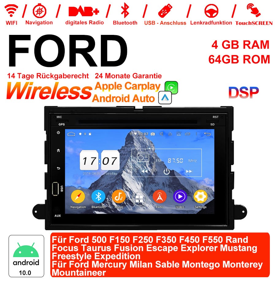 7 Zoll Android 12.0 Autoradio / Multimedia 4GB RAM 64GB ROM Für Ford 500 F150 F250 F350 F450 F550 Rand Focus Taurus Fusion Escape Explorer Mustang Freestyle Expedition Ford Mercury Milan Sable Montego Monterey Mountaineer Mit WiFi NAVI Bluetooth USB