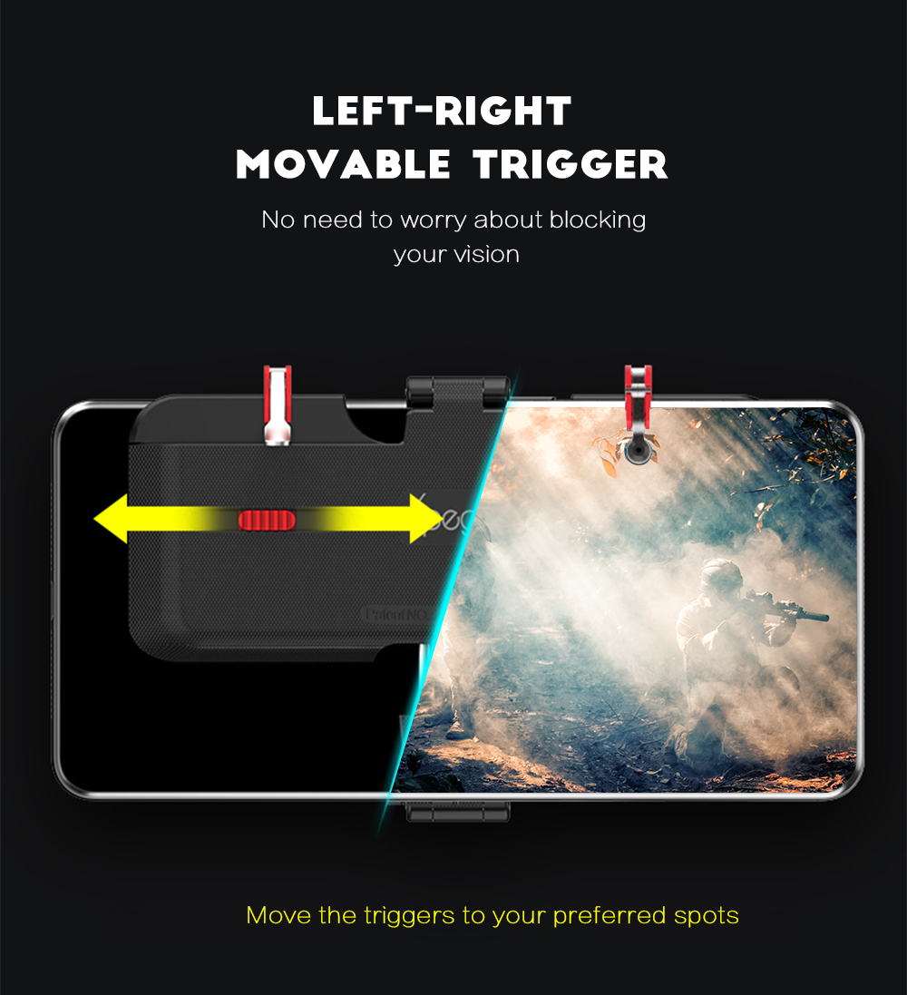 Auslösertyp Gun Button Design, der Abzug kann nach links und rechts schieben, um anzupassen, die Bildschirmkontakte anzupassen, die Spielkarte nicht zu blockieren, die Ansicht und verschiedene Funktionstasten nicht zu blockieren,