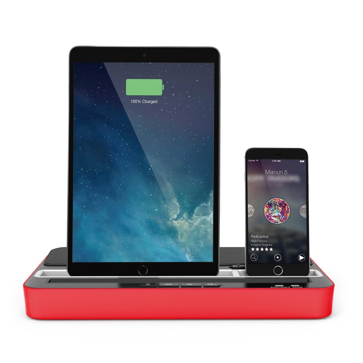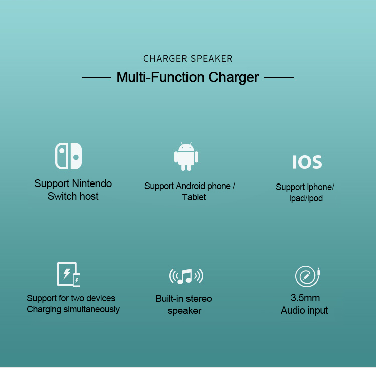 Dieses produkt ist ein mehrzweck ladung stand mit lautsprecher, mit Typ-C, Blitz zu USB, micro USB drei typ von chang-über plug.