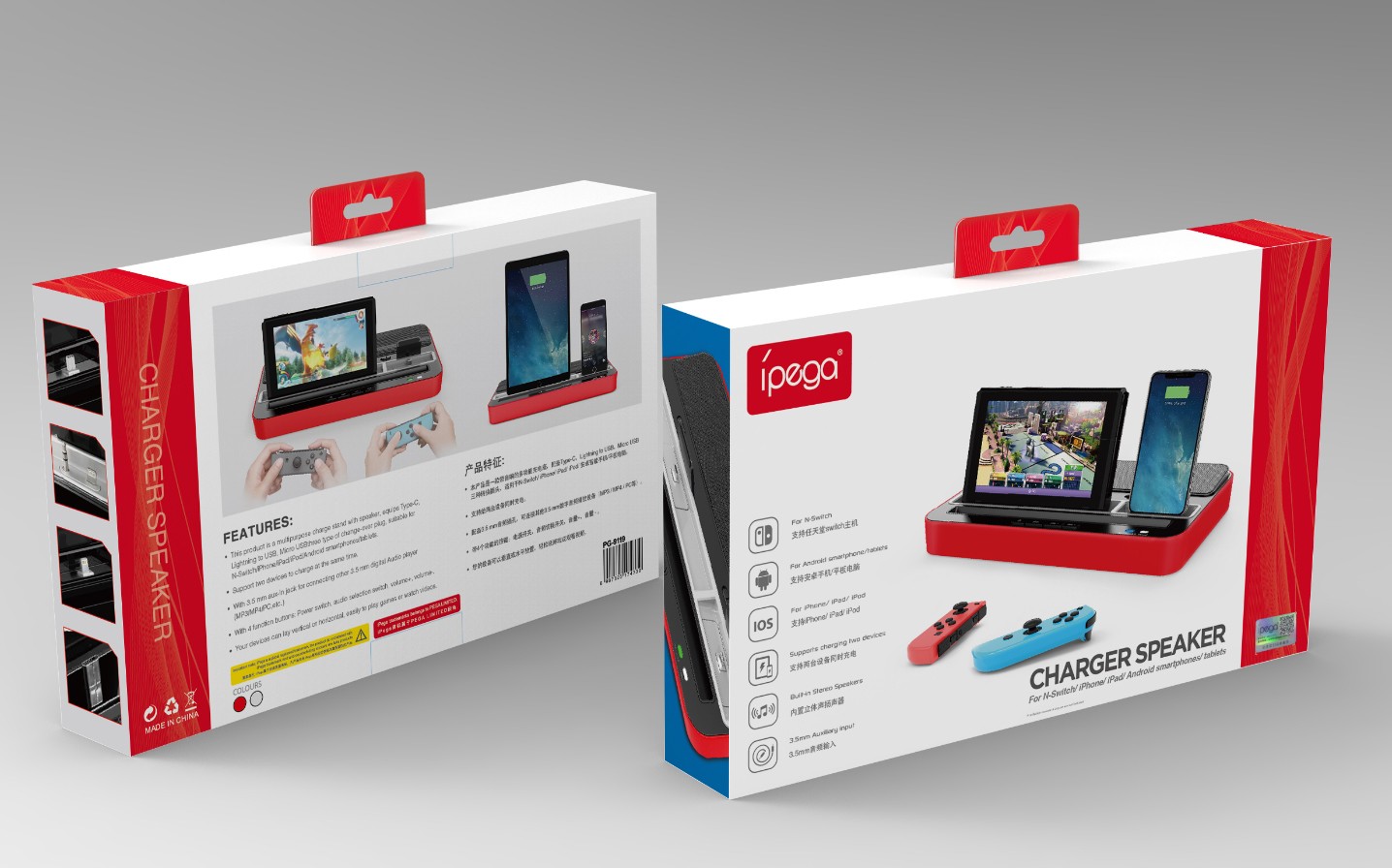 ipega PG-9119 Ladestation für Nintendo Switch Mehrzweck-Ladebuchse mit Audio-Lautsprecherfunktion