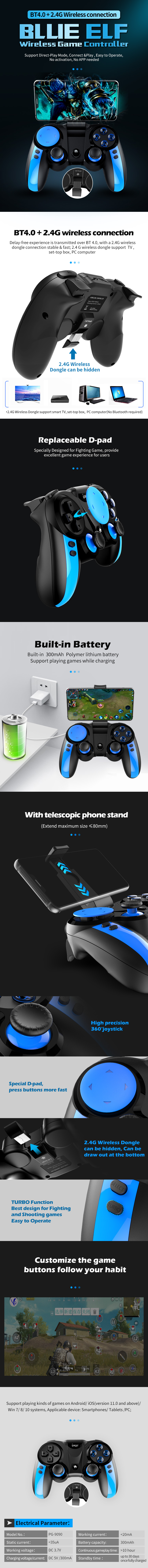 -Das Produkt wird mit einer Bluetooth 4.0 + 2.4g-Funkempfängerverbindung geliefert.