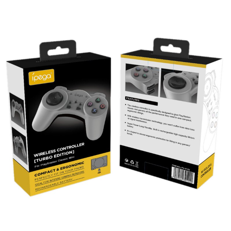 Dieses Gamepad ist kompatibel mit der PS Mini / PS Classic-Spielekonsole zum Spielen von Spielen mit drahtloser Verbindung. Mit hocheffizienten drahtlosen Übertragungstechniken beträgt die Übertragungsentfernung bis zu 8 Meter. Eingebauter 400-mAh-Akku.