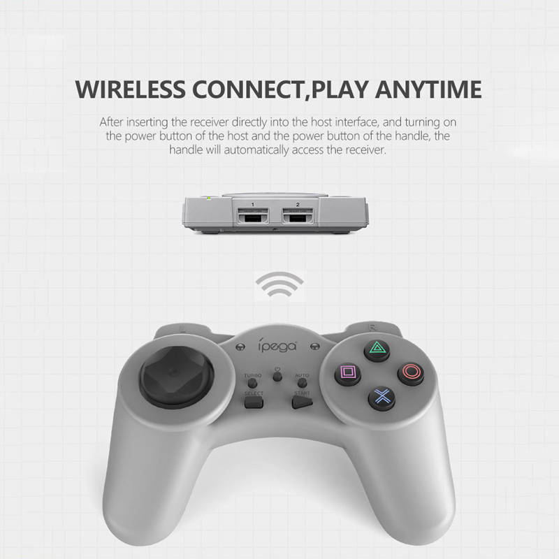 Ergonomisches Design und bequemes Händchenhalten. Kompatibel nur mit der PS Mini / PS Classic-Spielekonsole. Stecken Sie den drahtlosen Empfänger in die Schnittstelle der Konsole und schalten Sie die Konsole ein.