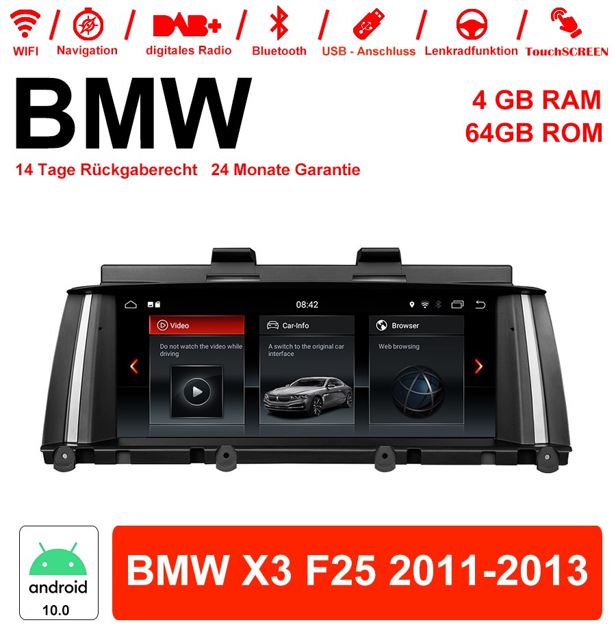8,8 Zoll Android 10.0 Autoradio / Multimedia 4GB RAM 64GB ROM Für BMW X3 F25 2011-2013 Mit WiFi NAVI Bluetooth USB