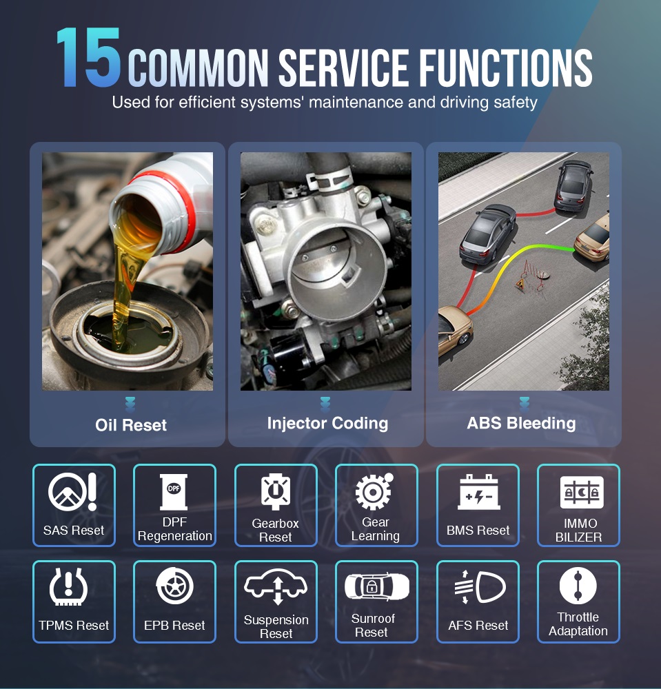 Launch CRP909X Unterstützung unter 15 Arten Wartungsfunktionen: