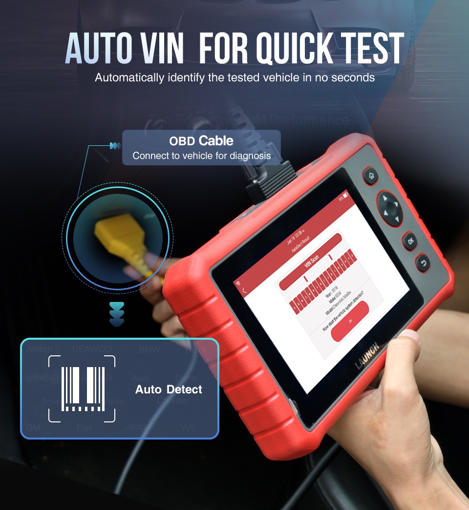 Sobald eine Verbindung mit dem OBD2-Anschluss des Fahrzeugs hergestellt wurde, erkennt der CRP909X die Vin-Nummer des Fahrzeugs automatisch. Ermöglichen Sie einen schnellen Zugriff auf die Fahrzeugsystemerkennung.