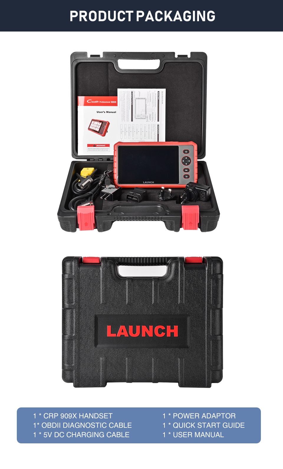 LAUNCH X431 CRP909X Autodiagnose-Tablet-Scanner ist eine neueste evolutionäre intelligente Android-Lösung für die Diagnose und Wartung von 12-V-Pkw, leichten Nutzfahrzeugen, Pickups. Sie umfasst mehr als 57 Automarken.