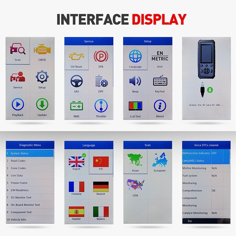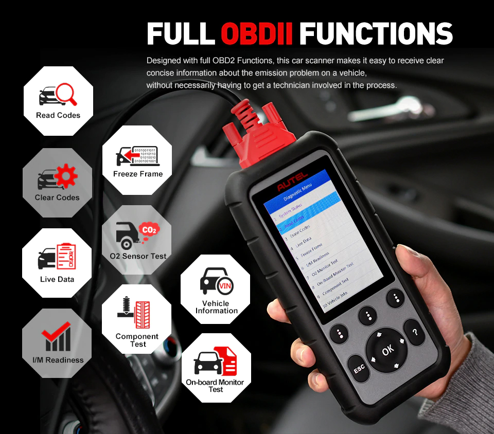 VOLLE OBD2 MODI➤ Volle OBDII funktionen dieser scanner sind effektive zu schnell & präzise diagnose der ihre fahrzeug (Lesen OBDII daten/Löschen Codes …), und sind ideal für vorbei die emission test reibungslos (I/M Bereitschaft Überprüfen, O2 Sensor Test, auf-Bord Monitor Test …).