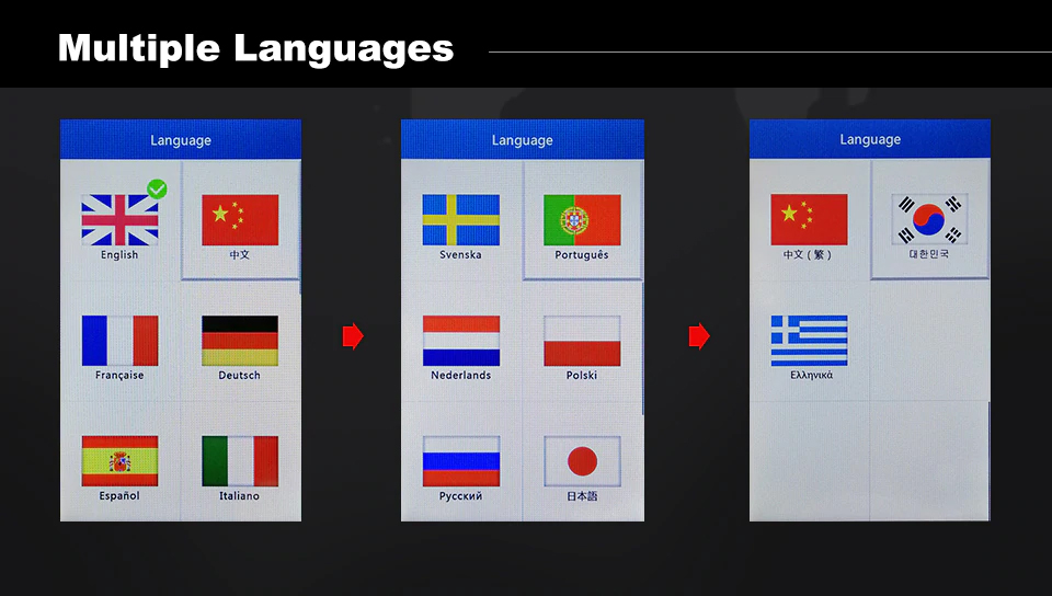 Englisch, Französisch, Deutsch, Spanisch, Portugiesisch, Dutch, Polnisch, Schwedisch, Koreanisch, Japanisch, russisch, Italienisch, Griechisch.