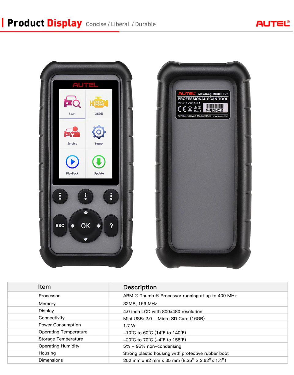 GARANTIE & UPDATE➤ Autel MD806 PRO führt eine komplette 12-monate garantie ab dem datum der verkauf zur verfügung gestellt von Autel Hauptsitz in China, mit freies lebensdauer software update, und 14 sprachen unterstützung (EN, CN, FR, DE, ES, PT, NL, PL, SV, KR, JA, RU, ES, GR).