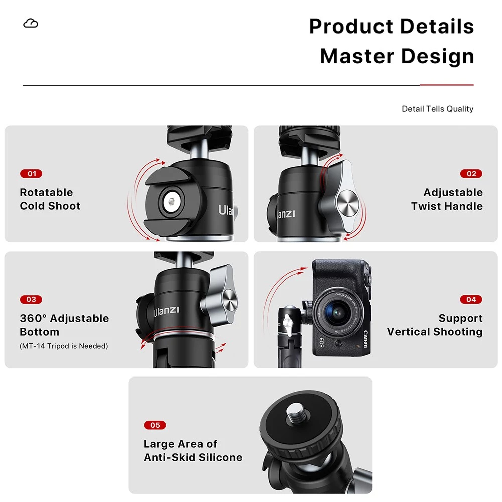 Der Ulanzi U-60-Kugelkopf führt das Patent für das Design von zwei kalten Schuhen ein, mit dem das Problem der Platzierung des Kameramikrofons gelöst wurde.